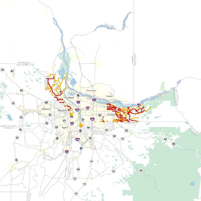 This map shows displays the roads the Multnomah County DCS - Transportation Division maintains during snow and ice events and is intended for public use. The map describes the service level of each road and explains which roads will be cleared first.
