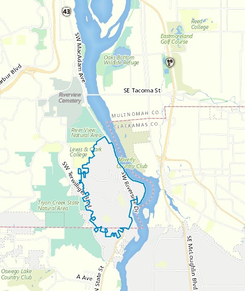 Description: Boundary is determined by the taxlots and sewer infrastructure within the Dunthorpe-Riverdale Sewer District